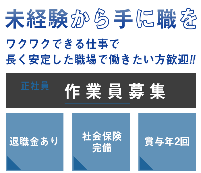 岐阜県多治見市池田町に拠点を置く有限会社二俣製作所です。 20代~60代の様々な年齢層が、積極的にコミュニケーションを取りながら働いています。 未経験者からスタートした従業員もいるため、わからないことは、遠慮せずに、 聞いて頂いて問題ありません。 未経験でも、明るく・元気に・前向きに取り組んで頂ければ、従業員一同、サポートさせて頂きます。 今回、この求人ページで多治見市池田町の作業員を募集致します。 この求人内容に興味を持たれた方、ご応募お待ちしております。